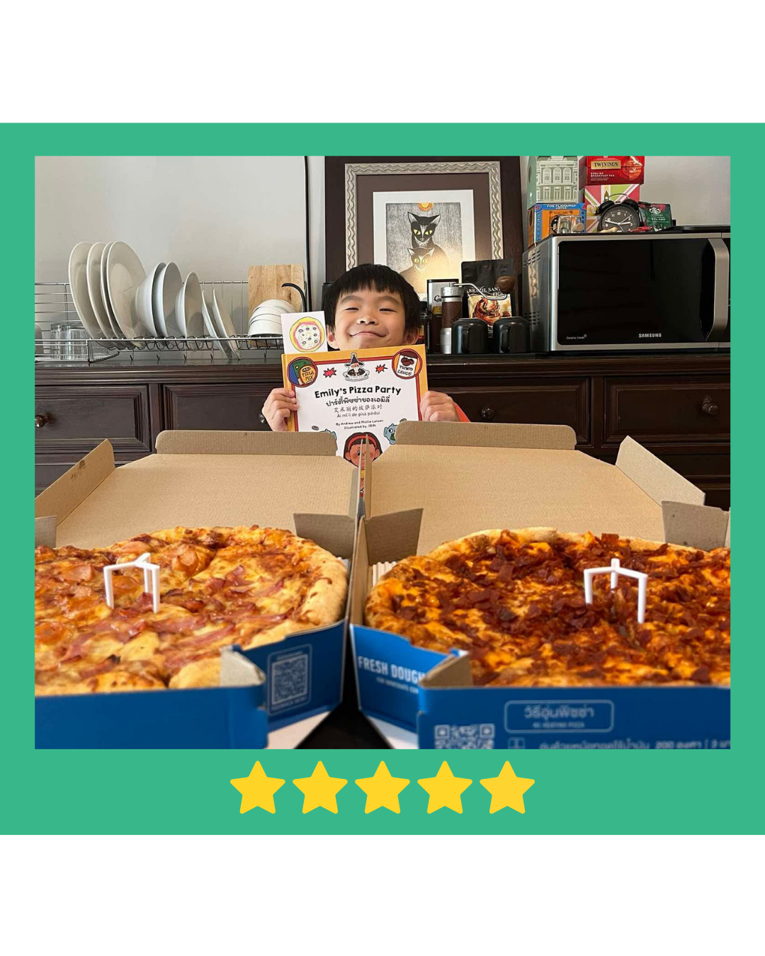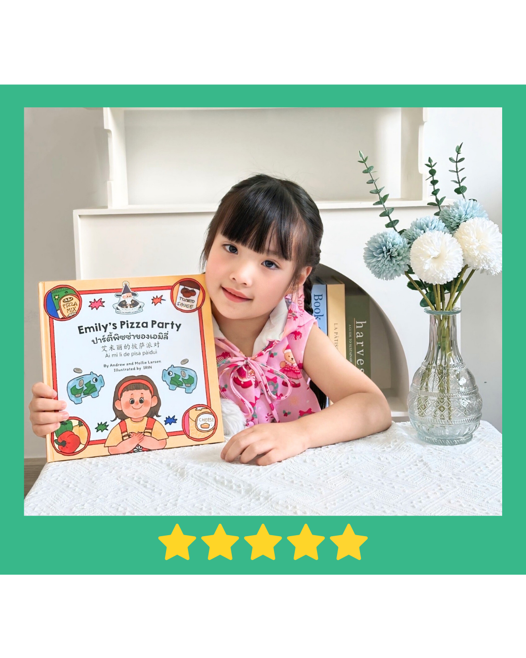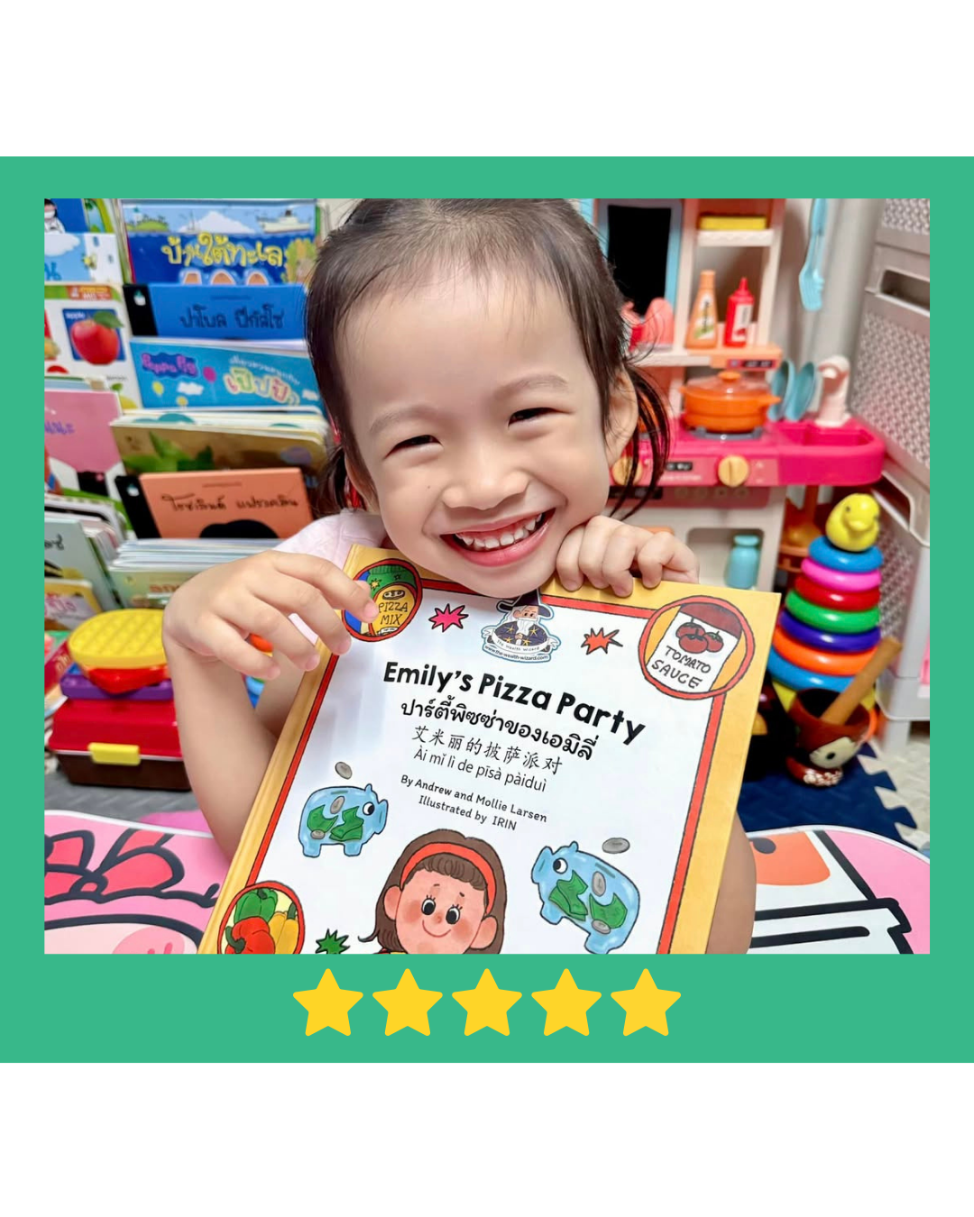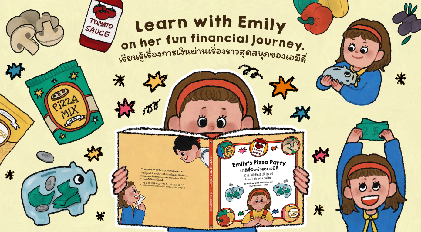 In addition to enhancing language development with three languages—English, Thai, and Mandarin—it also equips children with essential financial skills. Emily’s Pizza Party is a storybook every household should have.