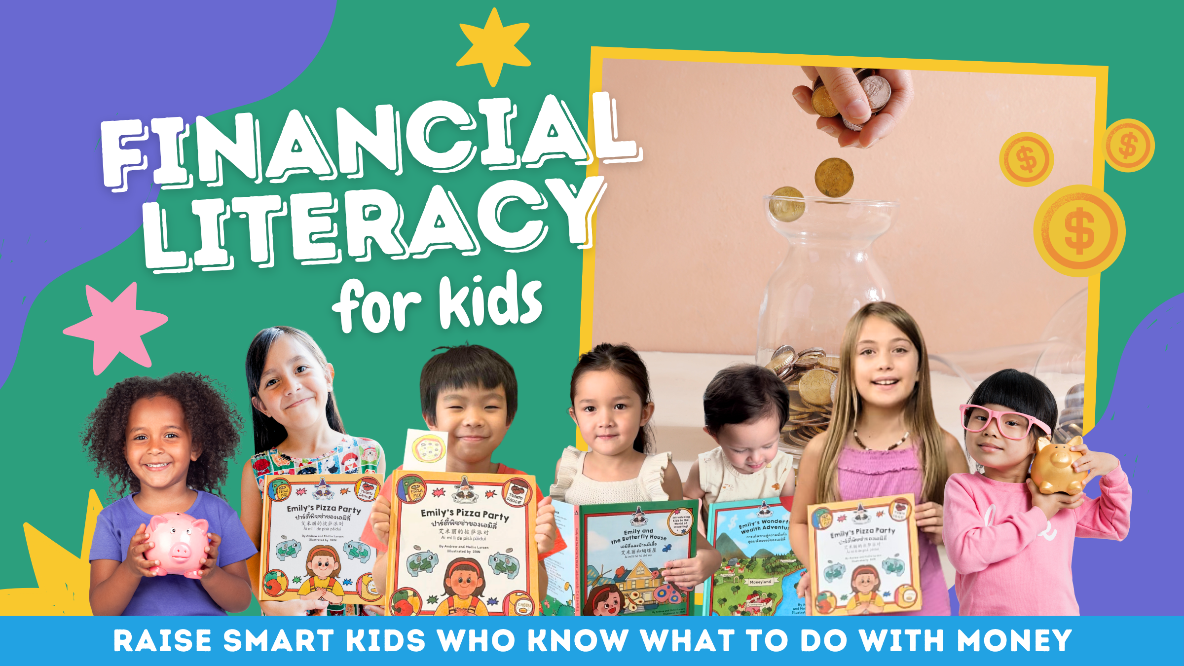 Emily’s Pizza Party is our best-selling storybook that teaches kids the basics of money—saving, spending, and goal setting—through a fun and relatable adventure.